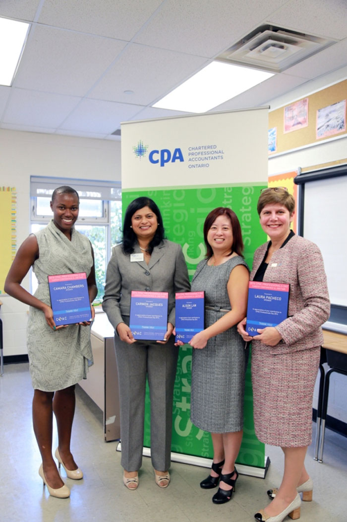 左起:Camara Chambers, Volunteer Toronto; Carmen Jacques, Student Recruitment Manager, CPA Ontario; Alison Lam, Aerocare International; Laura Pacheco, FEI Canada