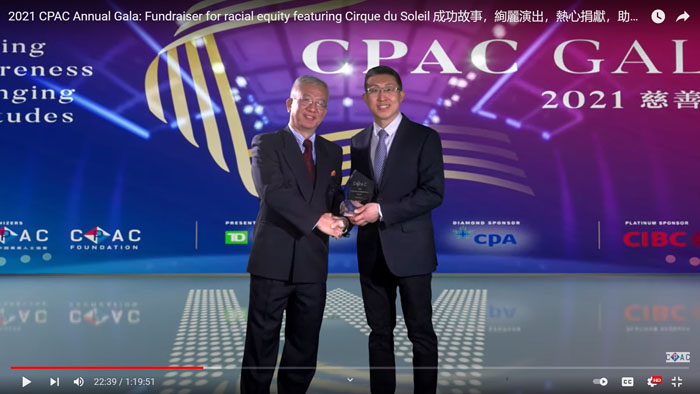 CPAC慈善晚宴作为多伦多社区的一个年度盛会已经举办了近二十年,一直获得商界人士、社区组织、专业团体和CPAC会员的高度关注和广泛参与。作为大多伦多地区规模最大、档次最高的移民专业人士年度社交活动之一,CPAC慈善晚宴为参会嘉宾搭建了与多伦多政界、商界及社区领袖进行交流的理想平台。受到疫情的影响,今年的CPAC慈善晚宴在网上举行,也获得了社会各界人士的大力支持,各级政府领导人亦发信祝贺。高质量的晚会内容,颁奖仪式和加拿大国宝级演艺团体、太阳马戏团(Cirque Du Soleil)的精彩演出让观众大饱眼福,受到观众们的一致好评,太阳马戏团的主席兼首席执行官Daniel Lamarre先生也特别发来视频对晚会本身和CPAC所从事的事业表示支持。