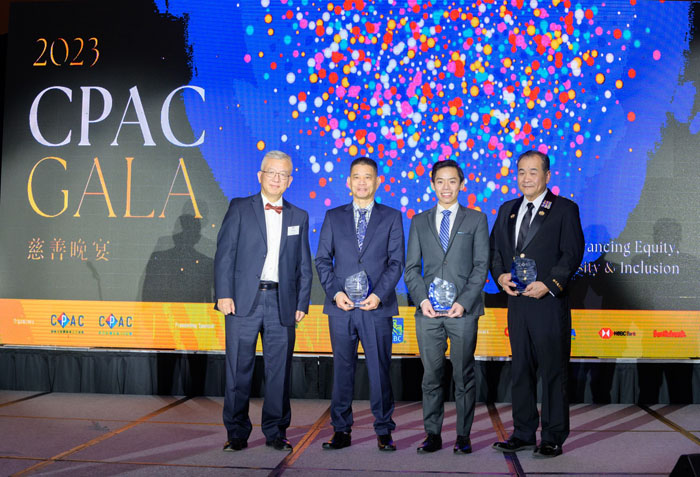 CPAC年度慈善晚宴的另一个重要目的是彰显华人及亚裔移民对加拿大所做出的贡献。为此目的,晚宴上颁发了2023年度CPAC成就奖。加拿大华裔移民警察局长刘永凯(Yung-Kai Liu)和西安大略大学医学院教授、伦敦卫生科学中心劳森卫生研究所危重病研究项目科学家彭天庆博士喜获2023年度CPAC专业成就奖,温哥华一家高科技公司的亚裔首席财务官Nam Pham 先生喜获2023年度CPAC青年成就奖。