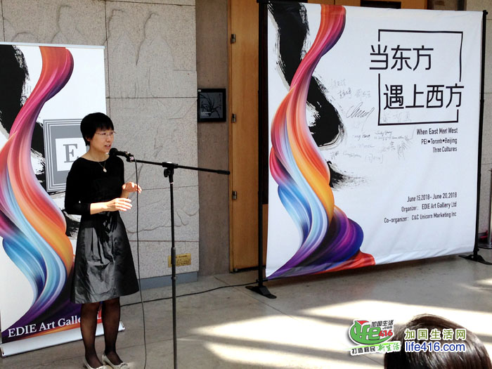 画家代表Julia表示爱德华王子岛(PEI)盛产红土,红土上长满茂密的绿草,铁锈红与草绿的色块堆积构成一幅有强烈视觉冲击的天然图画,她热爱这片土地,希望用手中的画笔来描绘这片美丽的土地。孙昌茵老师表示这是一次高规格的画展,希望未来与大家有更多合作机会、切磋交流。来自北京的画家赵峥在发言中感谢主办方给予机会,无论是东方还是西方,画家们描绘锦绣河山的心都一样。