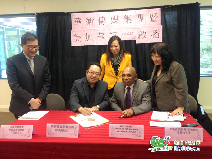 华卫传媒集团主席覃汉聪先生说,“今天确是一个值得喜庆的日子。美加华语FM102.7将进入一个新境界,这次创举也令所有听众及同事为之振奋。我们一直的格言就是服务社群及与睦邻建立良好的关系。现在,我诚邀大家跟我们一起庆祝这项盛事。调好FM102.7频道,准备于11月15日准时收听!”