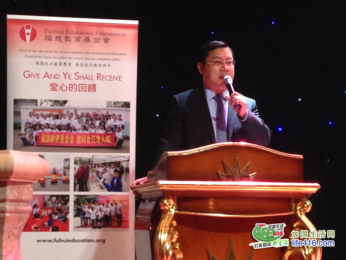 当晚大会出席嘉宾有中国驻多伦多代总领事庄耀东先生,他感谢福慧对中国教育的贡献,并表示将继续支持福慧的工作。大会司仪由列治文山区议员廖立晖先生及电视台节目主持雨薇女士担任,表演嘉宾有歌唱名家王越女士、李佳蓉女士和她的学生李姝彤小姐。最后全场以福慧孩子最喜爱的歌曲“感恩的心”作结。