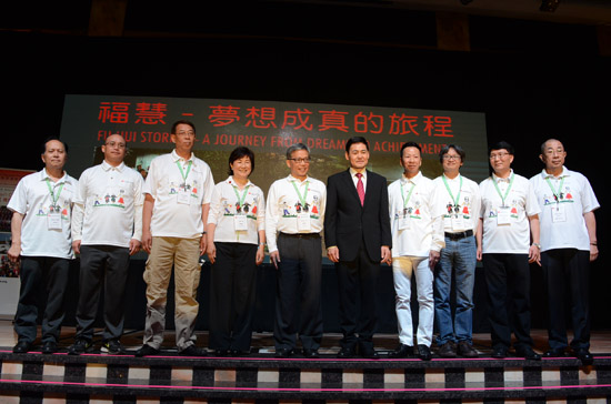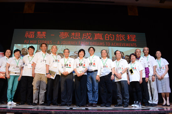 福慧教育基金会理事会及部份义工成员合照。(左六起)主席关保卫、会长黄绮铢、香港会长谢国雄