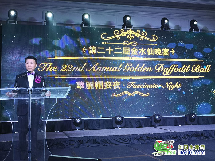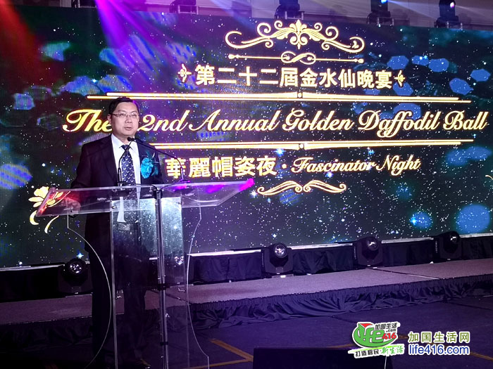 加拿大防癌协会安省行政总裁 Mr. Jeff Cornett 称金水仙晚宴有着悠久的历史,以优秀的传统来支持加拿大防癌协会肩负的使命及重任。他不仅感谢金水仙基金会董事会同人、义工、志愿者,还补充说,21 年来金水仙晚宴将社区人士聚集一起来庆祝加拿大居民能够过着更健康生活,拥有更长寿的生命。
