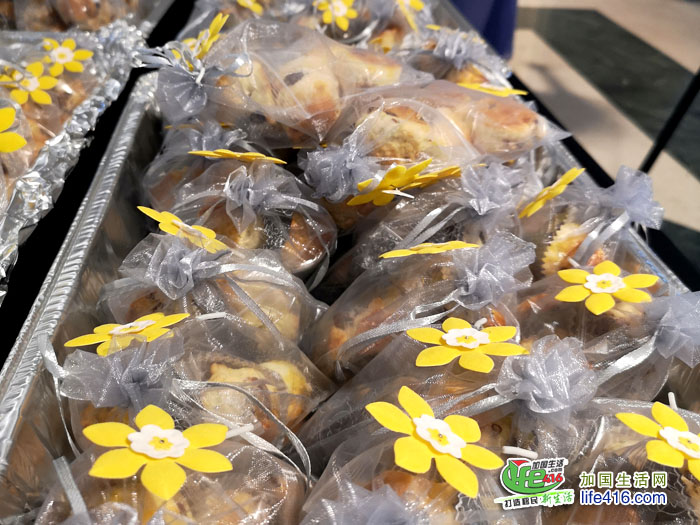 朵朵水仙花下是一包包小点心,购买一包小点心也是为金水仙筹款做贡献
