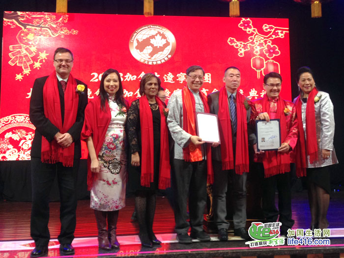 联邦参议员胡子修,联邦国会议员伍凤仪,谭耕,陈圣源,马万里,蔡报国,中国驻多伦多侨务领事杨葆华,安省对外贸易厅长陈国治,安省议员黄素梅,赵成俊,多伦多市副市长\安省保守党候选人黄闵南,多伦多市议员李振光,詹嘉礼,万锦市地区议员安思创,万锦市议员赵善江,何胡景,杨绮清,列治文山市议员陈志辉, Tom Muench,旺市议员杨士渟等加中政府官员到场祝贺。