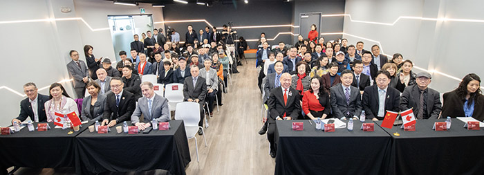 当天新闻发布会盛况空前,前联邦国会议员蒋振宇、中国驻多伦多总领馆商务参赞刘林林、万锦市市长薛嘉平、万锦市副市长陈国治、万锦市市议员杨绮清、列治文山市议员崔冰辉、万锦市贸易局主席Chris Collucci、列治文山市贸易局主席Errol Da-Ré、列治文山市贸易局第一副主席张杰、列治文山市贸易局执行主任Monique Dennison和出海中心首席顾问孙志峰等重要嘉宾出席了发布会。