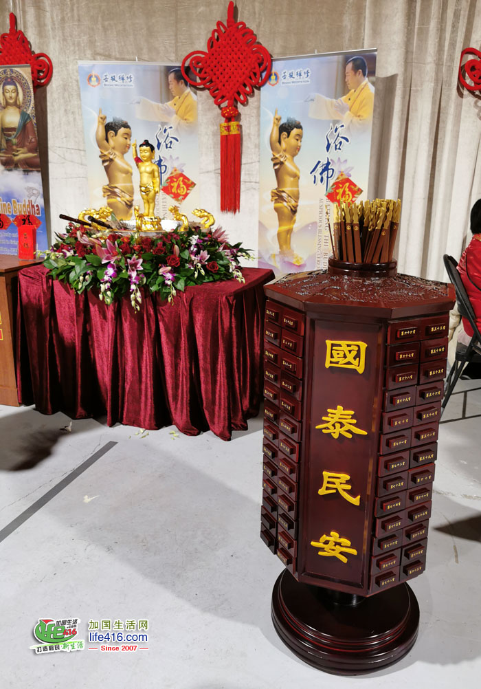 浴佛专区供大众上香,得佛菩萨全年保佑,今年特设抽签及卜卦区,并有专人为大家解签,很受欢迎。大量吉祥礼物,送给现场朋友,包括了门神,对联,挥春,福字,好运红包,日历及吉祥手绳等,如你当天活动错过了,农历年期间,欢迎到菩提禅修结缘领取。现场有专人为你写心中的吉祥挥春。
