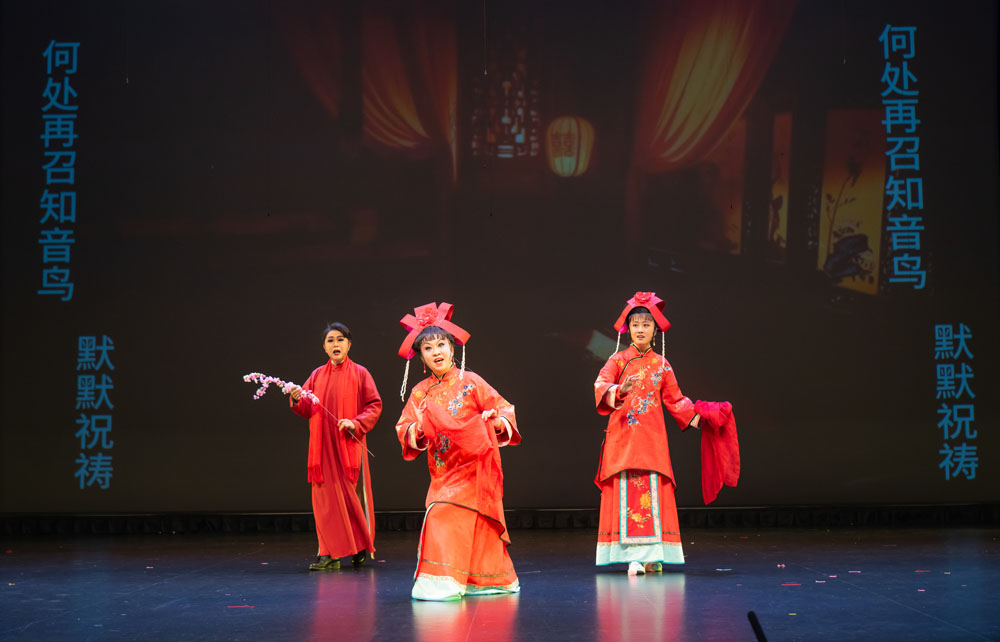 晚会的压轴大戏是多伦多越剧团团长芦娜和本团优秀小生吴依楠演绎的《新梁祝•十八相送》,在梁祝深情款款的音乐声中大幕缓缓落下,明年中秋再相聚。