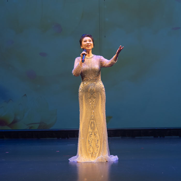 女高音歌唱家、声乐艺术教育家、词曲作家何春威(Vicky He)女士,特为本次晚会高歌一曲《望月》,观众听得如痴如醉,把晚会带入高潮。