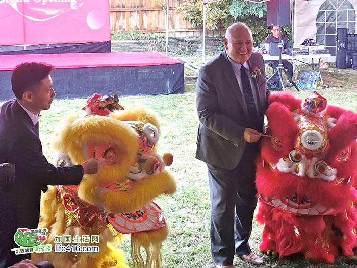 在热烈的掌声中,中凯金融CEO Rex Lin和万锦市长薛家平上前,共同为沉睡的祥狮画上了眼睛。龙狮开光,祝愿大家身体健康,事业兴旺,吉祥如意,宏图大展。