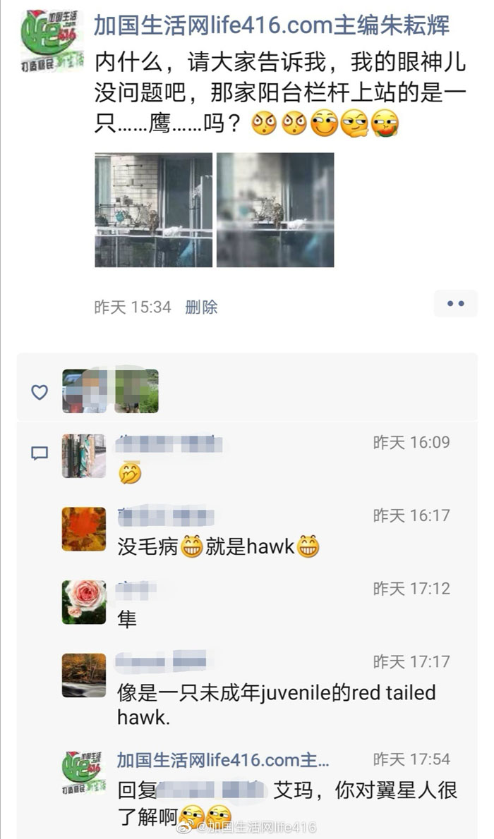 作者的话:前几天遇到一件有意思的事情,我正在写稿子呢,抬头一看,突然看到对面阳台的栏杆上有个奇怪的东西,那是一只……鹰吧?艾玛,这情节让我想起了小说第五十八章里的情节:阿舞正和翼星师傅君灵白在拉面馆吃着拉面,君灵白抬头一看,窗台站着一只鹰,于是开启了阿舞与耶律隆绪的真鸟版“Twitter” 互动……详情请点击这里。