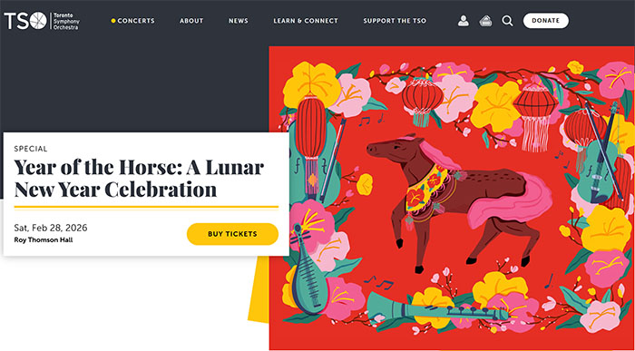 网址:https://www.tso.ca/concerts-and-events/events/year-of-the-horse-a-lunar-new-year-celebration