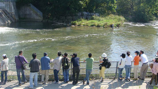 公园这里还有个水坝,三文鱼一定得跳过这个水坝才能继续回游