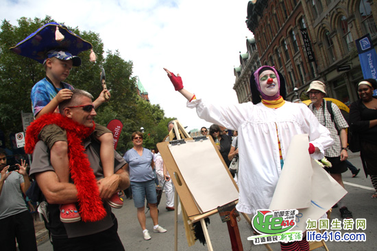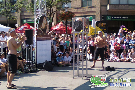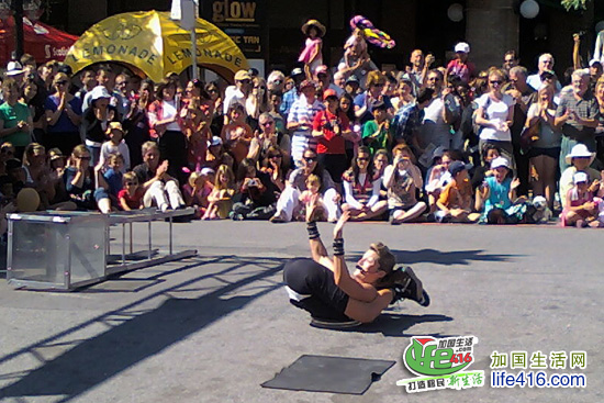 在St. Lawrence Market 附近的各条街道上,到处可以看到这样人山人海的人群,时不时地发出阵阵掌声和阵阵笑声……