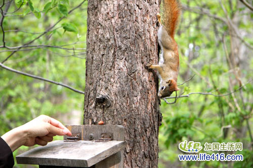 爱德华公园里还有许多小动物,一点也不怕人,周末休闲的时候,别忘记带上些吃的,你会有机会体会和大自然“零”接触的感觉,比如说准备些花生,把花生弄碎放在手心里,不一会就会有鸟儿飞到你的手上啄食(详情请见:俺和加拿大的鸟儿松鼠的“零”接触(组图+视频))。