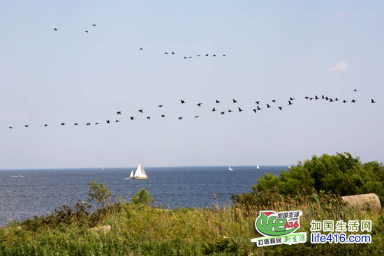 在Tommy Thompson Park 随处可见这样排成长队在湖面上飞行的鸟群。