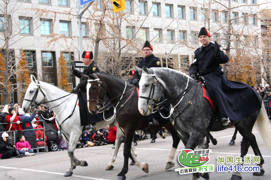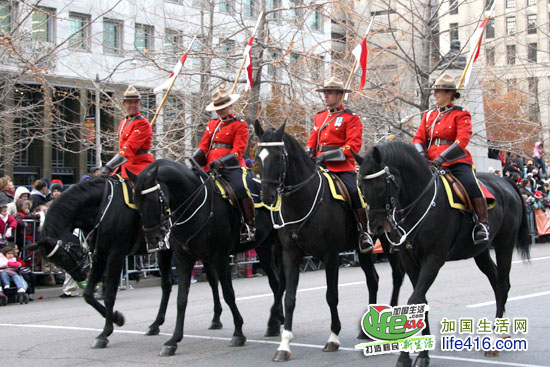 这次的圣诞老人出场竟然是RCMP 加拿大皇家警察开道哟,先是四匹高头大马。