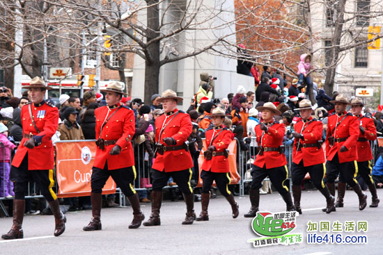 再是一组RCMP警察开道,这个镜头如果换成在国内,一定是整齐的身高。也许,这就是加拿大特色吧……