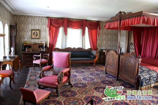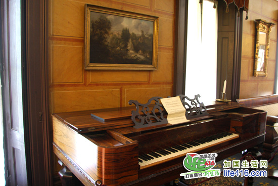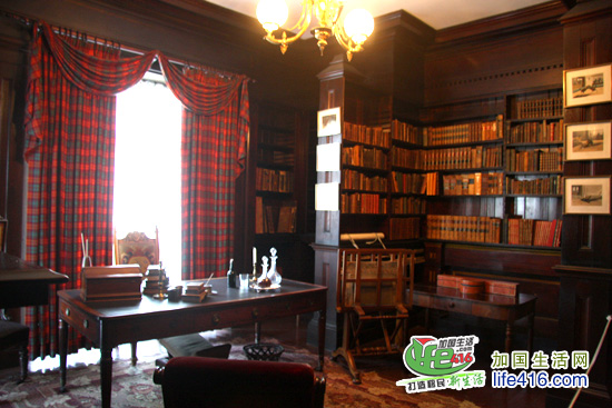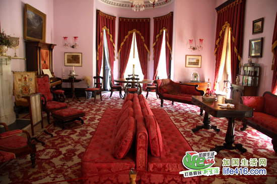 Sir Allan Napier MacNab 居住的Dundurn Castle 建成于1835年,当时用了三年时间花了17万5千建成,共有72多个房间供男爵一家四口及佣人们居住。后来,Hamilton市政府在1900年花了5万块买下了这座豪宅,又花了近3百万元重新装修了这座豪宅,将里面的72个房间恢复成42个房间展示给公众,这些房间都被恢复成1855年的模样,好让公众了解当时这座豪宅的主人的生活状态。这是二楼的个供家庭成员活动的区域,大家可以在这里弹弹琴、聊聊天、织织毛衣什么的。