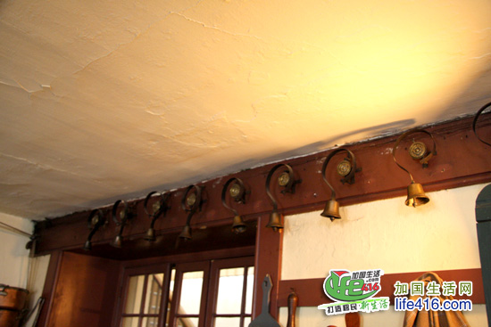 如果主人有事要招唤佣人的话,那么大的房间肯定是听不到的,所以就设计了这种铃铛,哪个房间需要哪种服务或是茶点都有特定的铃声。只要主人在楼上一按铃,铃声一响,在地下室的佣人们就知道需要哪种服务了。