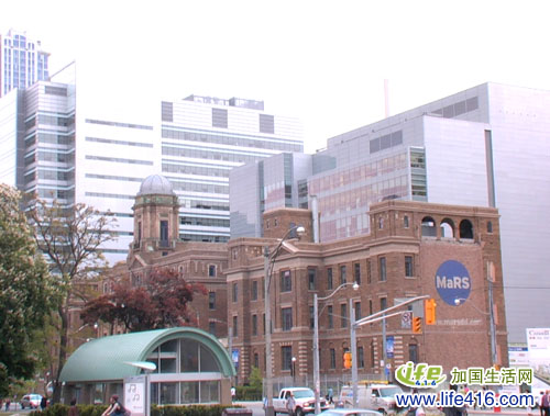MaRs Centre就在College街上,从这里看去,MaRs的大楼交融在现代建筑中,虽然古老,但仍显得很有韵味。时间太紧了,没到里面去看。