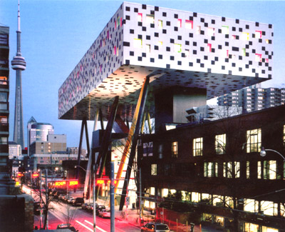 【加国生活网】Ontario College of Art & Design是加拿大最大的一所艺术与设计大学,位于Dundas与University的西南角,沿着University街走一到Dundas街就能看到这座空中楼阁的超凡设施。该座名为 Sharp Centre for Design 的独特10层建筑物是由英国前卫建筑师Will Alsop设计,用了许多明亮颜色的支柱,其独特的设计视角将安省美术设计学院变成了一个巨大的、后现代树屋(tree house),简直就是一个律动着生灵。