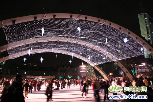 Nathan Phillips Square 滑冰场位于Bay 夹Queen 的西北角,坐TTC 地铁到这里滑冰是最方便的,在Queen站下车即可。点击查看google地图